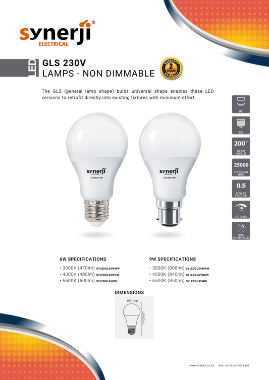 SYNERJI 10W GLS A60 Lamps DIMMABLE