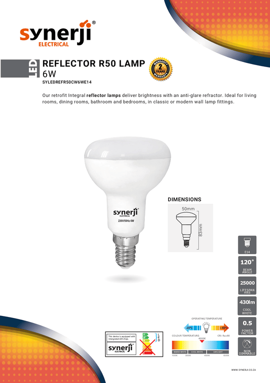SYNERJI 6W REFLECTOR R50 LAMPS