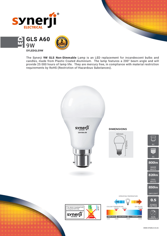 SYNERJI GLS A60 9W NON-DIMMABLE WITH DAY/NIGHT SENSOR