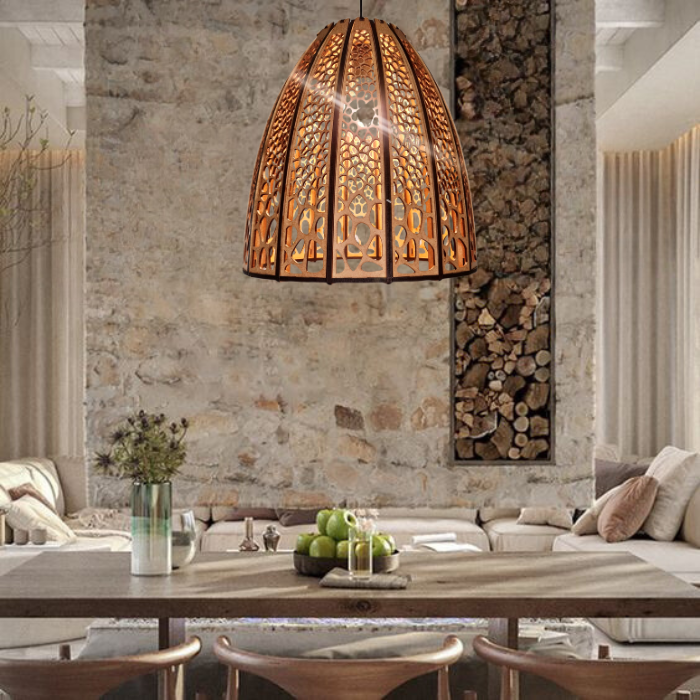Elevate your home décor with the Morocco Panel Basket. The Morocco Panel Basket pendants are crafted from 100% natural compressed pine, free from harmful additives such as glues and formaldehyde. This eco-friendly pendant light combines traditional craftsmanship with modern design, making it a perfect addition to any space.